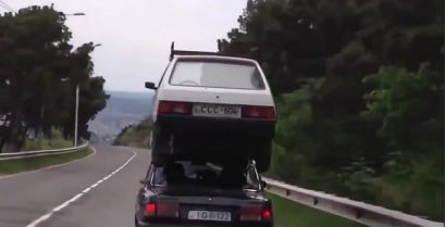 Στη Ρωσία, ένα αυτοκίνητο μεταφέρει ένα άλλο αυτοκίνητο στην οροφή του. Μια νέα μορφή γερανού;