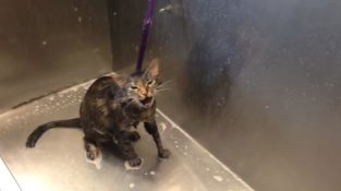 Η γάτα λέει “no more” κατά την διάρκεια του μπάνιου της