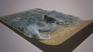 Μια επίδειξη σε rendering ψηφιακής θάλασσας και κυμάτων, που δημιουργήθηκε με το λογισμικό Cinema 4D Studio. Η απεικόνιση είναι εξαιρετικά ρεαλιστική.