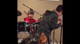 Ένα μικρό αγόρι στα ντραμς, βλέπει τον φίλο του να γλιστρά και να πέφτει μπροστά του. Μετά την πτώση, ήταν μια εξαιρετική ευκαιρία να παίξει το κλασικό “Μπα νταμ τσσσ!”.