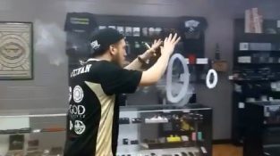 Ένας άνδρας χρησιμοποιεί ένα ηλεκτρονικό τσιγάρο για να δημιουργήσει μερικά πολύ εντυπωσιακά δαχτυλίδια από καπνό.