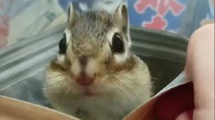 Ένας σκίουρος μέσα σε ένα σακουλάκι με πατατάκια