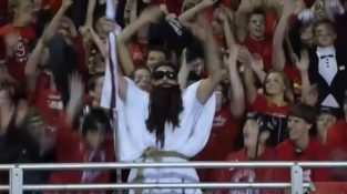 Ντυμένος ως Μωυσής σε ένα γήπεδο, ένας άνδρας πραγματοποιεί ένα μικρό θαύμα.