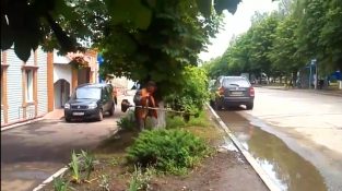 Ένας μεθυσμένος κηπουρός στη Ρωσία, δίνει μάχη με ένα χορτοκοπτικό.