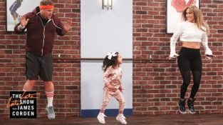 James and Jennifer Lopez take their dance abilities and fitness to a new level when they sign up for a dance class taught by toddlers — snacks included.