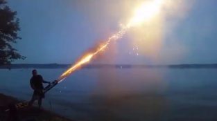Εκτόξευση 210 πυροτεχνημάτων από ένα αυτοσχέδιο μεγάλο κανόνι, που μοιάζει με minigun.