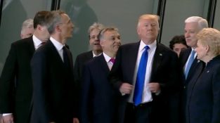 Ο Ντόναλντ Τράμπ σπρώχνει τους προέδρους των άλλων κρατών για να μπει μπροστά, κατά τη διάρκεια της συνόδου κορυφής του ΝΑΤΟ στις Βρυξέλλες.