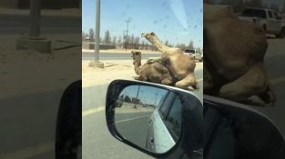 Δύο ερωτευμένες καμήλες εμποδίζουν την κυκλοφορία, σε ένα δρόμο του Κατάρ.
