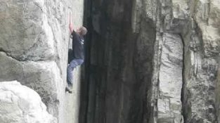 Ένας ελεύθερος ορειβάτης χωρίς καμία ασφάλεια και εξοπλισμό, αναρριχάται ενάντια σε έναν κατακόρυφο βράχο, όταν ξαφνικά χάνει τη λαβή του. Ευτυχώς, φαίνεται να έχει αυξημένη αίσθηση της ισορροπίας… :)