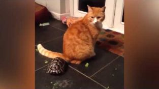 Me commentary on tortoise vs cat. That bloody tortoise is a tough little bastards.