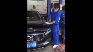 Μηχανικός δυσκολεύεται με το καπό ενός αυτοκινήτου
