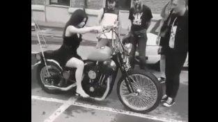 Μια γυναίκα θέλει να τραβήξει μια φωτογραφία πάνω σε μια μοτοσικλέτα Chopper. Όμως κατά λάθος θα πατήσει το πεντάλ των ταχυτήτων με το πόδι της και η μοτοσικλέτα θα ξεκινήσει…