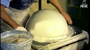 Η διαδικασία της κατασκευής γεωγραφικών υδρογείων σφαιρών το 1955, σε ένα εργοστάσιο στο Λονδίνο.