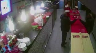 In a fast food restaurant, a man wants to pay for his order … in the mirror.