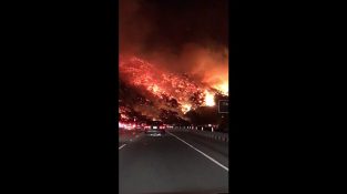 Ένας οδηγός κατέγραψε το αποκαλυπτικό τοπίο μπροστά του, καθώς οδηγούσε κοντά στις δασικές πυρκαγιές που μαίνονται στη Νότια Καλιφόρνια.