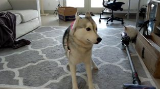 Ένα ενθουσιασμένο χάσκι αντιδρά πολύ αστεία όταν θέλει να παίξει με το αφεντικό του.