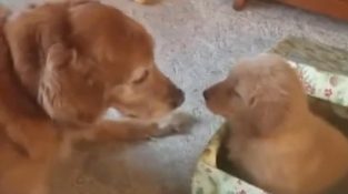 Σκύλος παίρνει για δώρο ένα κουτάβι