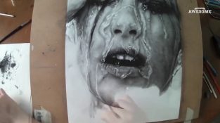 Η ζωγραφιά ενός υπερρεαλιστικού πορτραίτου από τον καλλιτέχνη SlimDraw.