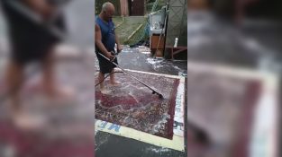Ένας άνδρας στη Ρωσία έχει προσαρμόσει τρεις βούρτσες πάνω σε ένα χορτοκοπτικό, με σκοπό να καθαρίσει ένα χαλί. Όπως φαίνεται, η πατέντα είναι αρκετά αποτελεσματική.