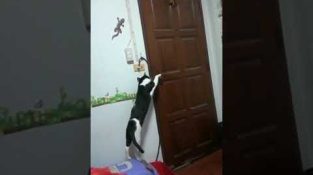 Occurred on May 16, 2018 / Samut Sakhon, ThailandThe cat really wanted to go outside so kept trying to open the door until it manages to turn the handle.