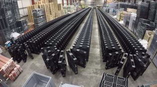 Στις αποθήκες της εταιρίας Exporta Global στη Βρετανία, οι υπάλληλοι έστησαν ένα μεγάλο ντόμινο με 1377 παλέτες.