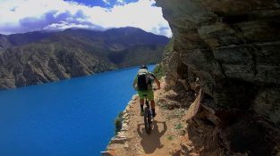 Ποδηλασία στους απόκρημνους και στενούς δρόμους γύρω από τη λίμνη Phoksundo στο Νεπάλ.