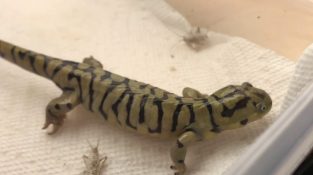 Μια σαλαμάνδρα προσπαθεί να φάει ένα γρύλο, αλλά δεν τα καταφέρνει. Στην πραγματικότητα τα μάτια των περισσότερων σαλαμάνδρων είναι προσαρμοσμένα για όραση τη νύχτα και δεν βλέπουν στο δυνατό φως.
