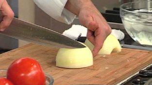 Ο Γάλλος σεφ Jean Pierre μας δείχνει τι πρέπει να κάνουμε αν θέλουμε να ψιλοκόψουμε ένα κρεμμύδι.