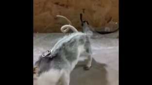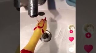 Ένα λαστιχένιο κοτόπουλο πνίγεται, αφήνοντας τρομακτικές κραυγές κάτω από το νερό μιας βρύσης.
