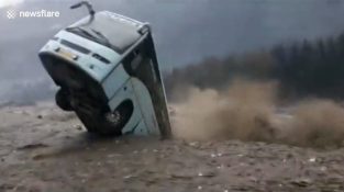 Λεωφορείο παρασύρεται από πλημμύρα σε ποτάμι (Ινδία)