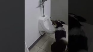 Ένας σκύλος κάνει την ανάγκη του στην τουαλέτα σαν ένας άνθρωπος.
