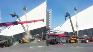 A man is left hanging after a crane falls over at a port in Guatemala, and this crane accident was caught on camera.