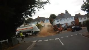 Σε ένα κατηφορικό δρόμο στο Worcester της Αγγλίας, ένα βυτιοφόρο χωρίς οδηγό χτυπά μερικούς τοίχους δύο σταθμευμένα αυτοκίνητα και ένα φανάρι (3 Αυγούστου του 2018). Ευτυχώς, αυτό το θεαματικό ατύχημα δεν προκάλεσε κάποιο τραυματισμό.