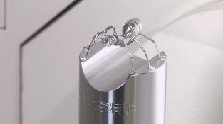 Μια μηχανή CNC 5 αξόνων της εταιρίας Beijing Jingdiao, κατεργάζεται ένα κομμάτι αλουμινίου για να δημιουργήσει ένα μυρμήγκι.