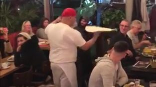 Στην ιταλική πιτσαρία Seecafé στο Hanau της Γερμανίας, ένας κατασκευαστής πίτσας εκτελεί μια παράσταση ανάμεσα στους πελάτες του εστιατορίου. Με μεγάλη δεξιοτεχνία, περιστρέφει μια ζύμη πίτσας στα χέρια του, κάνοντας εντυπωσιακά ζογκλερικά.