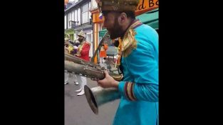 The Mr Wilson’s Second Liners orchestra performs Alice DJ’s “Better Off Alone” by walking down a street in Whitchurch, England.