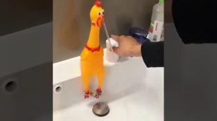 Η βρύση με το πλαστικό κοτόπουλο