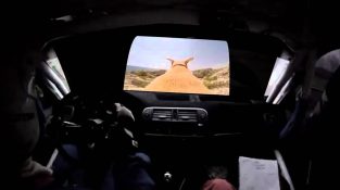 Ο Walter, ένα λαμπραντόρ που αγαπά το νερό και τρέχει προς στη θάλασσα με μια κάμερα στην πλάτη του, σε ένα αστείο μοντάζ από έναν αγώνα Ράλι.