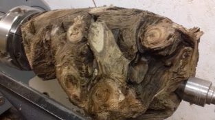 Ο ξυλουργός Andy Phillip φτιάχνει ένα βάζο, με βάση ένα κούτσουρο που περιβάλλεται από χρωματιστή εποξική ρητίνη.