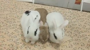 Καθώς δύο γυναίκες προσπαθούν να τα χωρίσουν, τρία κουνέλια μένουν κολλημένα μεταξύ τους σαν να μαγνητίζονται.