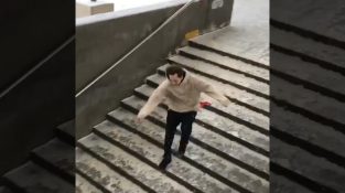 Ο νεαρός αθλητής του παρκούρ Polianskii δοκιμάζει να κατεβεί γλιστρώντας στα σκαλοπάτια ενός σταθμού μετρό στη Ρωσία. Όμως θα σκοντάψει, και θα πέσει ακριβώς δίπλα από μια ηλικιωμένη γυναίκα.