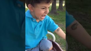 Ένα μικρό αγόρι πάνω σε μια τσουλήθρα φοβάται έναν βάτραχο που έχει καθίσει πάνω στο χέρι του. Η μαμά του θα προσπαθήσει να βοηθήσει, αλλά θα κάνει την κατάσταση χειρότερη…