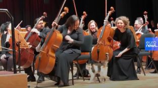 Μια γάτα κάνει παρέα στη συμφωνική ορχήστρα