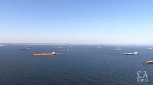 Ένα βίντεο που κυκλοφόρησε από την Αμερικανική Ακτοφυλακή, δείχνει ένα στόλο πετρελαιοφόρων που έχουν αγκυροβολήσει στις ακτές του Λος Άντζελες και του Λονγκ Μπιτς, καθώς δεν υπάρχει ζήτηση πετρελαίου λόγω της πανδημίας.