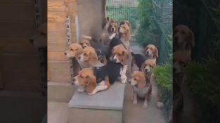 Σκύλοι ράτσας μπιγκλ περιμένουν ανυπόμονοι να ακούσουν το όνομά τους, την ώρα του φαγητού.