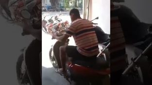 Σε ένα κατάστημα μοτοσικλετών στο Μεξικό, ένας άνδρας προσπαθεί να δοκιμάσει ένα σκούτερ.