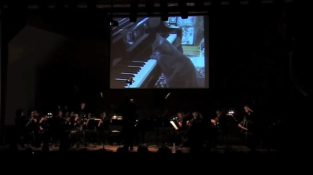 Ορχήστρα συνοδεύει μια γάτα που παίζει πιάνο