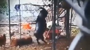 Σαν σκηνή βγαλμένη από θρίλερ, μια κατσίκα μέσα σε ένα μαντρί περπατά στα δύο πόδια.
