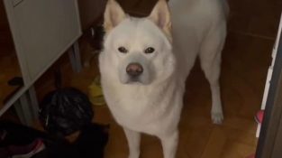 Ένας σκύλος που μόλις έχει ξυπνήσει, αργεί λίγο να συνέλθει από τον ύπνο και να αρχίσει το παιχνίδι.