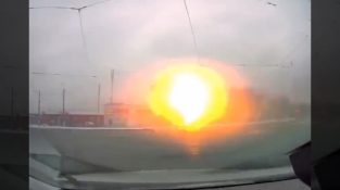 Ένας αυτοκινητιστής γλιτώνει από ένα ρωσικό βομβαρδισμό ενώ οδηγεί στο Χάρκοβο της Ουκρανίας.